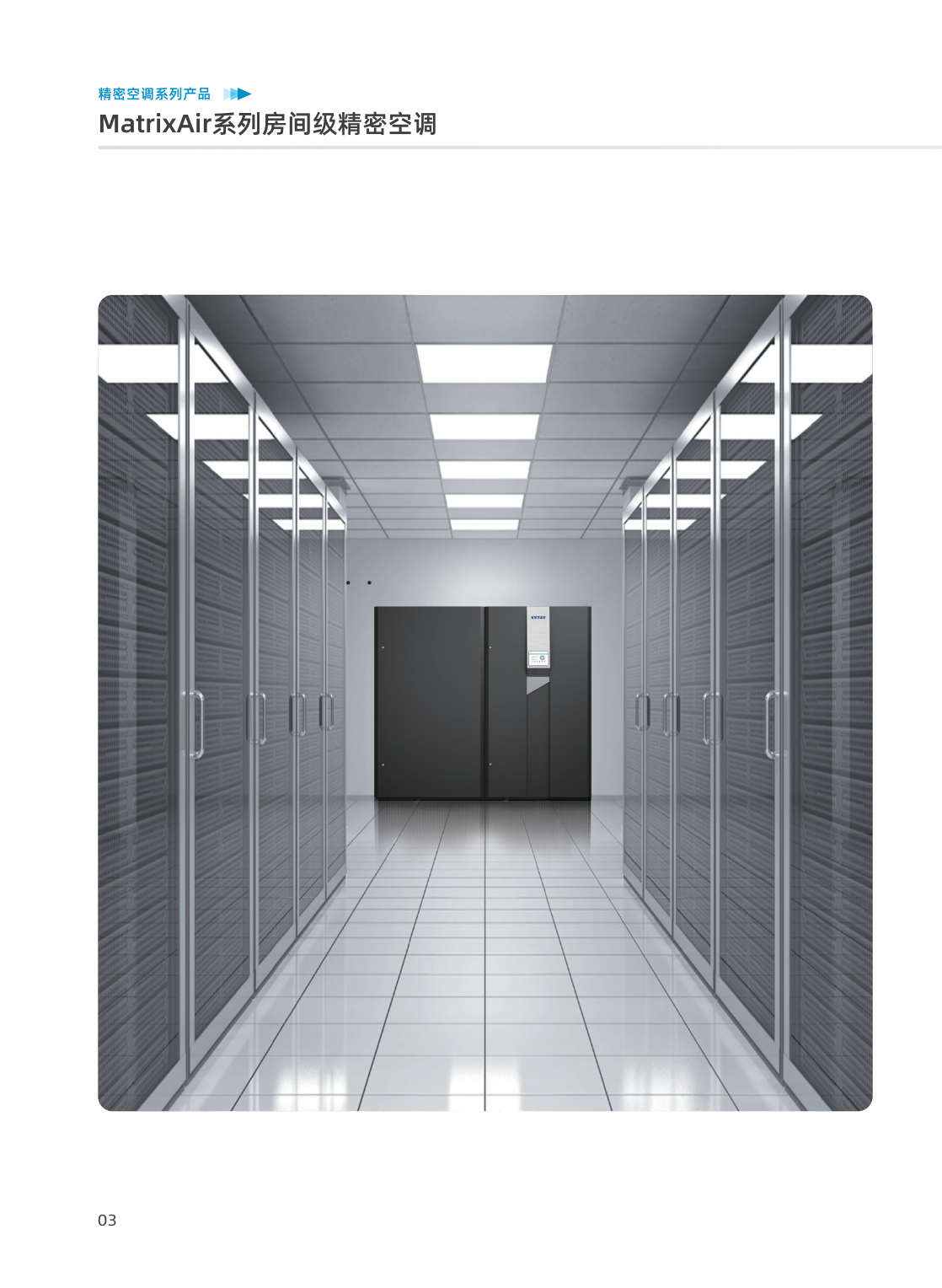 MatrixAir系列冷冻水型(30-250kW)MartriAir系列中大型房间级冷冻水专用空调,融合业界先进的节能环保技术,依托全面的开发工具和技术资源按高标准精心设计而成,以高品质的设计确保机组高可靠性,是关键制冷行业先进可靠,高效节能和安全环保的新一代产品,可保障数据中心关键IT设备全年不间断高效可靠运行。可靠高强度测试验证,高效稳定系统匹配设计,优质零部件,智能控制系统。高效三面回风,自动匹配送风,精确调节水流量,加热分级控制,0功耗湿膜加湿。灵活宽制冷范围,个性化量身定制设计,模块化结构设计,多种送风方式。